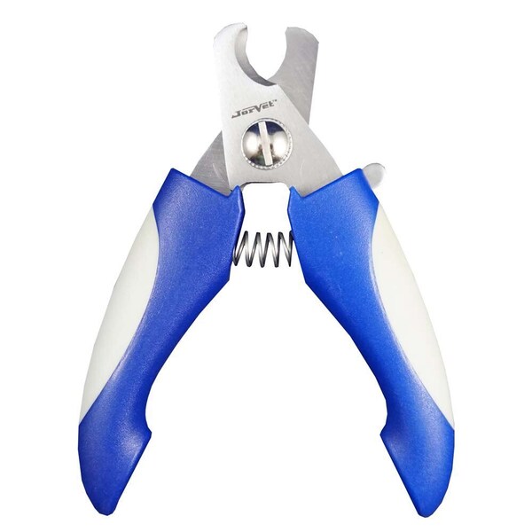 These trimmers have an attractive raised colored rubber insert in the hand. This new design has a firmer comfortable grip with a professional look. Also features a safety lock at handle bottoms. Light blue with dark blue rubber inserts. Packaged in resealable pouch.