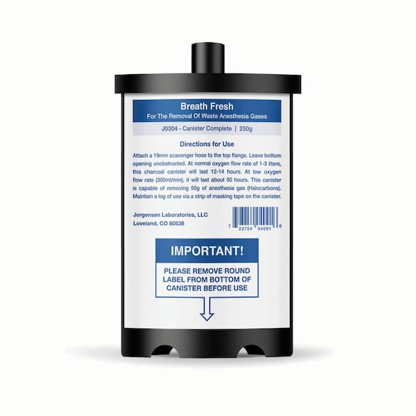 Breath Fresh Anesthesia Gas Filter. Activated charcoal canisters remove up to 50g of waste anesthetic gas. They attach to standard 19mm scavenger hose.Features:Inexpensive refills available Lasts 12-15 hours of anesthesiaSimple to use: connect and ready to goMounts right on anesthesia machine pole.