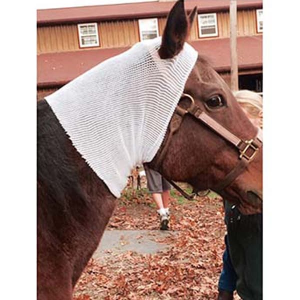 Many indications for bandaging are a challenge because of anatomical contours and large surfaces to cover. The JorNet is a tight, but elastic mesh that fits over body shapes of any type. It remains in position to hold primary and secondary wound dressing in place. Eliminates the need for sticky tape in many cases. Features: Reduces the need to shave fur Can replace both adhesive tape and gauze wrap Considerable cost savings Sizes to fit all sizes of animals Simply roll out and cut desired length 25 yds. stretched in a dispensing box J1533e Net Size: #11 Medium to Large horse neck (over ears)