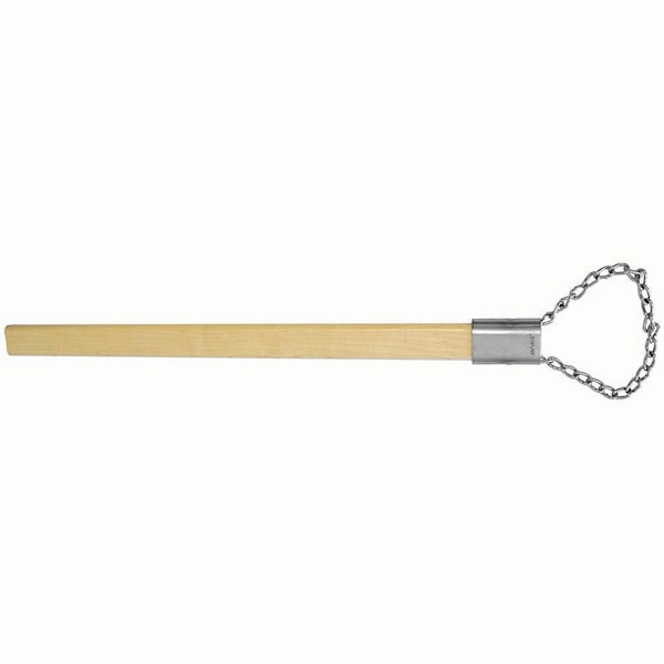Chain twitch with plated chain. 5" dia. loop with 25" flat wooden handle.