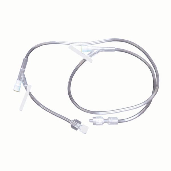 Two"Y" sites 32" length Two slide clamps Male spin luer lock distal end Female luer lock proximal end