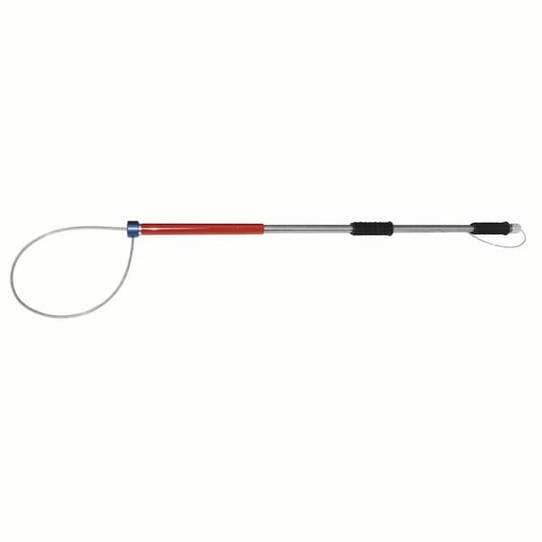This is the original"Rabies Stick" for restraint of vicious or hard to control animals. The metal pole has a locking mechanism to hold the cable tight plus a quick release button. Rubber cushion grips for two-handed no slip control. The end of the shaft has a covered portion to protect against chewing. Ketch-All Pole is 3ft. Suitable for cats and small dogs. 1-3/4lb.