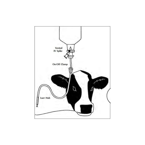 The JorVet large-bore IV set is a simple design for the rapid administration of solutions to large animals. Twice the diameter of conventional IV sets, the large bore increases the flow rate by a factor of 16 over standard human IV sets. Sterile.
