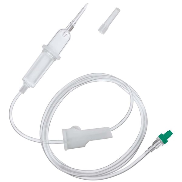 Blood Transfusion and Infusion Set with filter and plastic drip chamber. Roller clamp is flowregulating. Sterile. Disposable. 20 drops/ml.