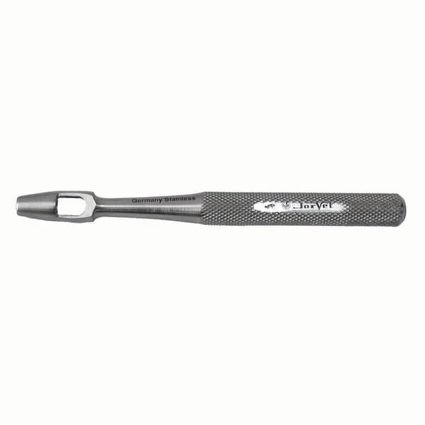Original round skin punches, knurled handle. Stainless steel.German-made. 4 1/2" (12cm).