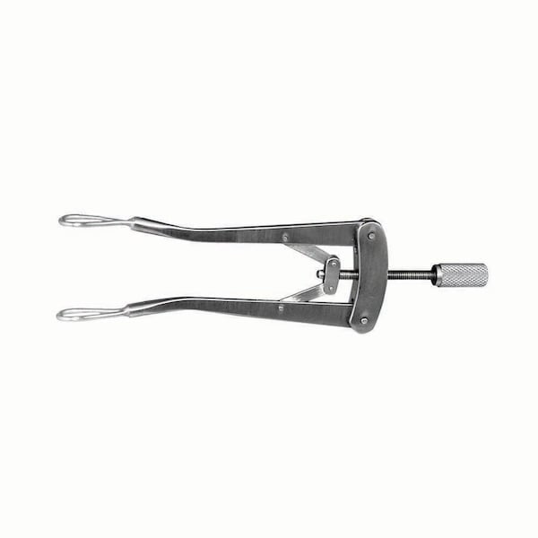 Smaller with less bulk than standard rodent gag. Knurled knob adjusts opening.