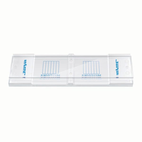 Special microscope slide with two etched chambers for quantitative fecal analysis.