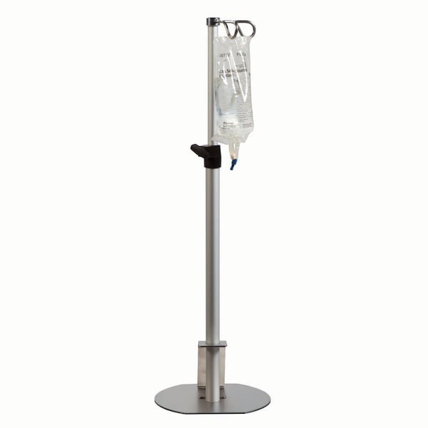 Stainless steel and aluminum Height Adjustable: 20.5" to 32.5" Base: 8.31" x 8.25" Holds two IV bags