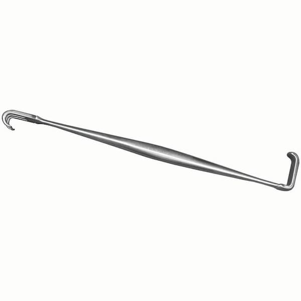 Double end retractor. Three sharp hooks on one end and a wide plate on the other end. 16cm (61/4").