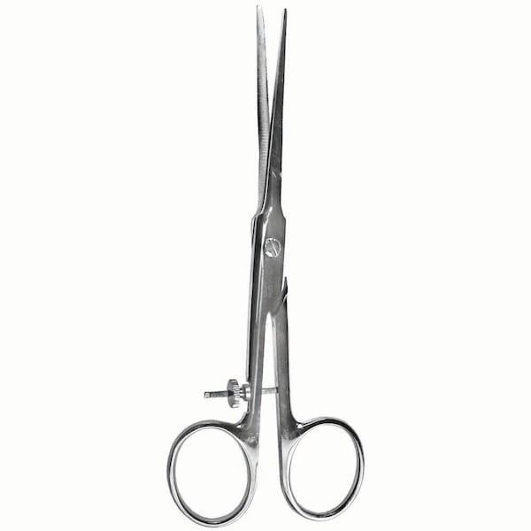 Christensen Teat Scissors, with cutting edges on the outside of the blade; adjustable opening. 6"L.