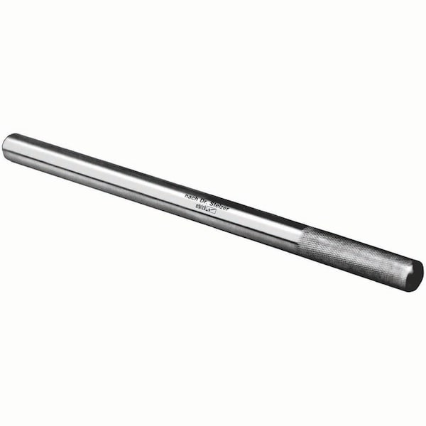 The punch is used for removal of cheek teeth through a trephined hole into the sinus. A knurled handle gives a better grip. A round head with a slight recessed area fits better onto the tooth. Stainless steel. 20cm L.