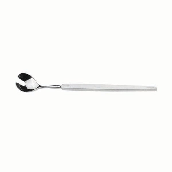 Useful for lifting orbit out of socket during an enucleation. Spoon-shaped with groove for optic nerve. 21mm wide, 5mm x 10mm notch, flat handle. Overall length 147mm (5.8"). Stainless.