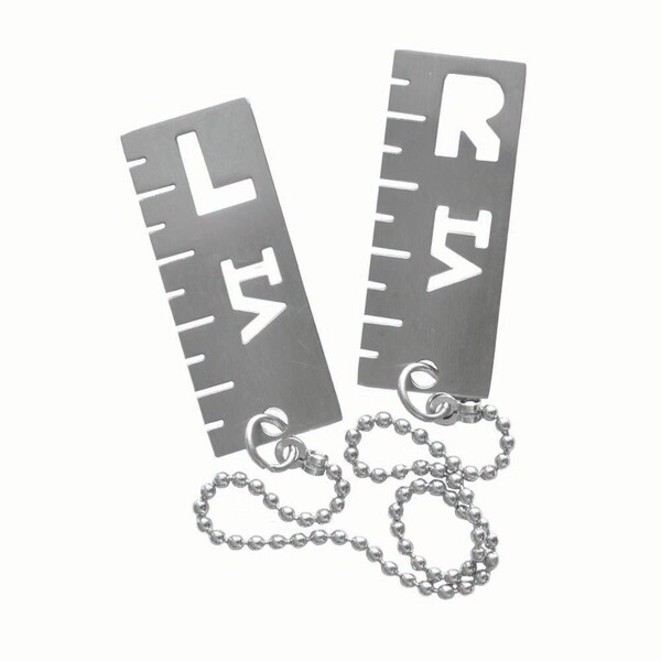 This set of two x-ray markers (L and R) does more than give the side orientation of an x-ray. It has a cm measurement scale. This is useful for sending digital x-rays to other parties that may have a different software or type of digital radiography. Markers are 50mm long and marked in 5mm intervals.INITIALS CANNOT BE CHANGED