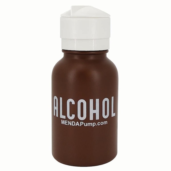 This handy pump bottle dispenses alcohol by pressing down on the top. Great for use in exam rooms for vaccination prep.