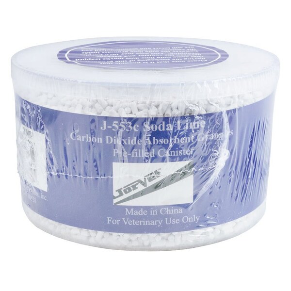 Carbon dioxide absorbent granules JorVet soda lime is a highgrade granular product that effectively absorbs carbon dioxide that is produced as an anesthesia byproduct It is a mixture of calcium hydroxide CaOH2 also known as lime plus a smaller amount of sodium hydroxide NaOH Upon exposure to carbon dioxide CO2, the calcium hydroxide converts to calcium carbonate CaCO3 This prevents CO2 buildup in a rebreathing circuit The sodium hydroxide acts as a catalyst in the process No potassium hydroxide KOH is present in JorVet soda lime this helps to avoid the formation of toxic compounds such as Compound A and carbon monoxide JorVet soda lime has a pH color change indicator that changes from white to violet when the soda lime needs to be changed It will eventually return to its original color if not changed Therefore, a good rule of thumb is to replace the soda lime every time the vaporizer is filledSoda Lime Cannisters Prefilled canister is preferred by many clinics Comparable with other brands of canister identical in size and weight JorVet now offers an entire range of soda lime productsPrefilled 920 grams