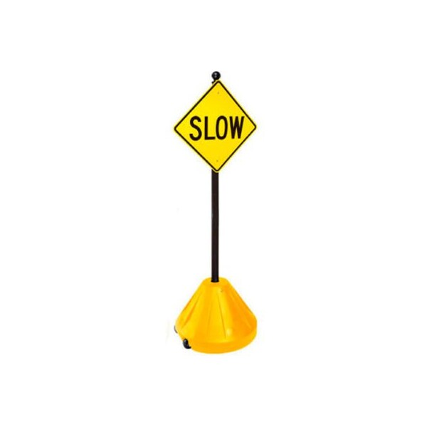 Magic master xl-pp3-48-y xl-portable pole rolling sign base, 48" pole, yellow x-large rolling sign base with pole. Base has recessed wheels and predrilled 48"pole and inner support sleeve with ez-grip finial plus mounting hardware and stability plates. 24" dia. X 16" tall rolling yellow base.