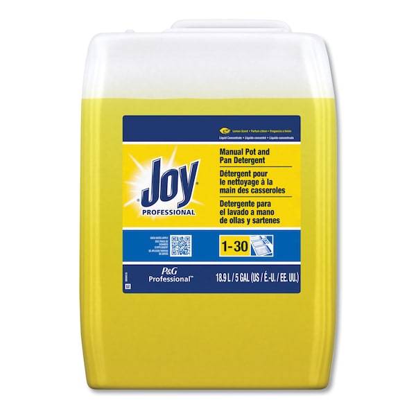 Joy Professional Manual Pot & Pan Dish Detergent cleans a wide variety of soils and leave your dishes with a fresh lemon scent. Forms surfactant micelles that stays suspended in wash water to provide micro-reservoirs of reserve cleaning power. A rich layer of suds provides high mileage performance for your dishes. Commercial grade detergent. Concentrated: Uses one to three fluid ounces of detergent per ten-gallon sink.