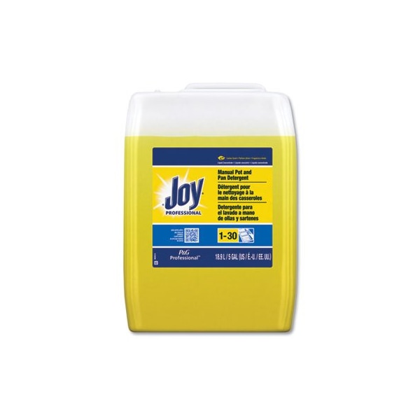 Joy Professional Manual Pot & Pan Dish Detergent cleans a wide variety of soils and leave your dishes with a fresh lemon scent. Forms surfactant micelles that stays suspended in wash water to provide micro-reservoirs of reserve cleaning power. A rich layer of suds provides high mileage performance for your dishes. Commercial grade detergent. Concentrated: Uses one to three fluid ounces of detergent per ten-gallon sink. Application: Hand Dishwashing; Applicable Material: Glass; Plastic; Stainless Steel; Chemical Compound: Phosphate-Free; Dirt Types: Cooked-On Grease; Food Particles; Grease; Organic Matter; Soil.