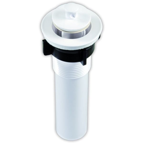 1-1/4 Inch Diameter Opening x 5 Inch Length; Fits Any Sink Opening 1-3/8 Inch To 1-3/4 Inch; White; With Pop-Up Stopper/ Foam Gasket/ Locknut