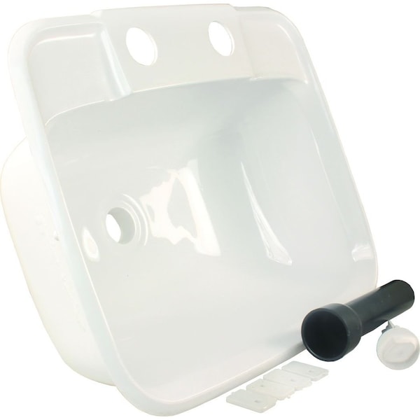 Single Bowl; Rectangular; 6 Inch Height x 14-7/8 Inch Width x 12-3/8 Inch Depth Overall Dimension; 14-1/4 Inch Width x 11-1/2 Inch Depth Cut-Out Dimension; With Faucet Mount; White; With 6 Inch Long Tail Flange Having ABS Glue/ 4 Inch Rubber Sink Stopper/ Mounting Clips/ Screws; Single