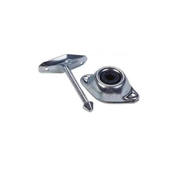 Use With RV Or Trailer To Hold Door Securely Open; Straight Plunger Style; 3 Inch Length; Zinc Plated; Steel; Rubber Socket; With Mounting Screws; Packaged