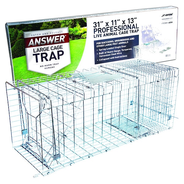 Answer Trap, Targeted Animals Groundhogs, Raccoons, Trap Style Two Door Trap, Material Galvanized Steel, Capacity 1 Animal, Color Silver, Bird Species Not Applicable, Product Type Animal Trap, Reusable Yes