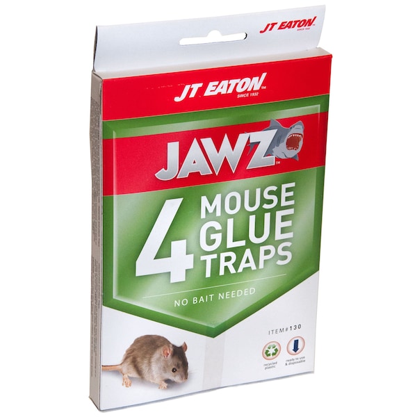 The JT Eaton 130 JAWZ Mouse Glue Traps comes as a four-pack of black, easy to use glue trays. No bait or poisons needed.