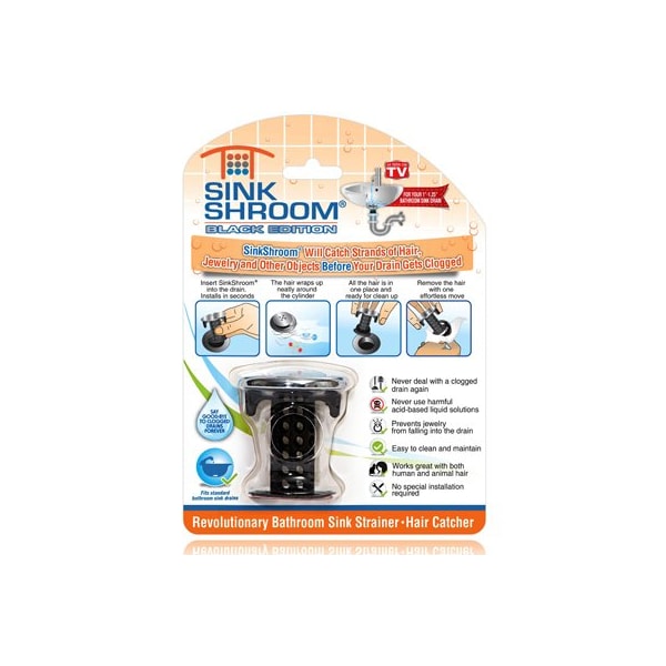 Black With Chrome Finish Cap, SinkShroom Bathroom Sink Drain Hair Snare Catcher, Strainer, Protector, Fits Inside, Neatly Collecting Hair Around It, Simply Wipe Off Go, No Harsh Chemicals, No More Tangled Messes, Fits Any Standard Bathroom Sink Drain 1125 In Diameter, Will Catch Every Hair Every Time, Not For Bath Tub Or Shower Stall Drains, Carded