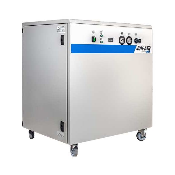 Item Laboratory Electric Air Compressor, Enclosed Yes, Lubrication Type Oil Free, Output Power 2 hp, Free Air Flow Rate @ Maximum Pressure 9 cfm, Maximum Operating Pressure 120 psi, Air Tank Size 10.57 gal, Input Voltage 230V AC, Sound Level 70 dB, Air Dryer Included No Air Dryer