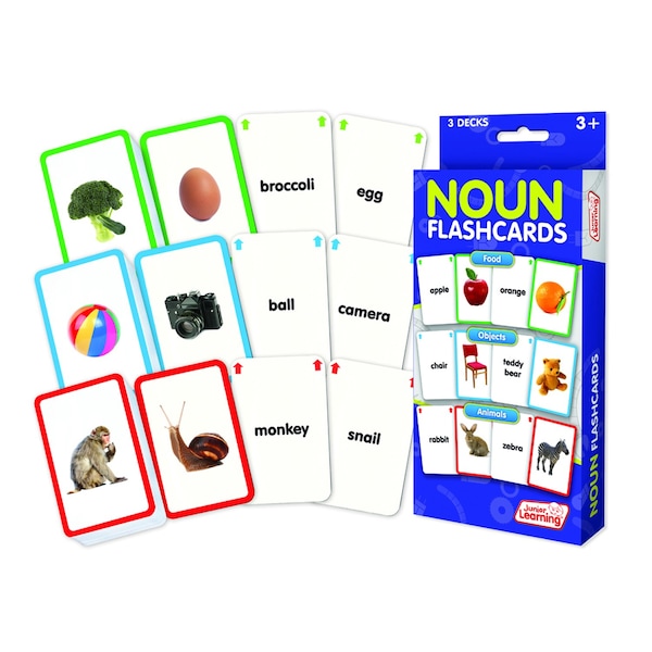 This set of flashcards includes 3 decks of 54 cards for teaching nouns (162 cards total). Topics include: food, objects and animals. A perfect activity for independent or guided learning. Teaches fast, automatic recall. Ages 3+.