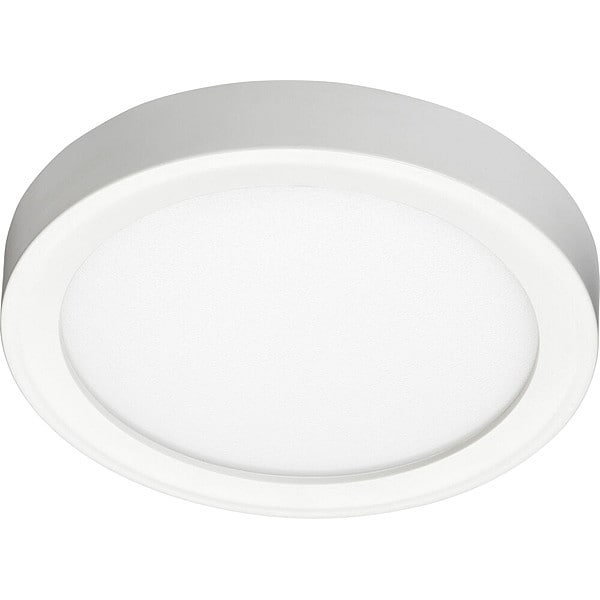 Surface Mount Downlight, Diameter 5 in, Overall Length 5 1/4 in, Series JSF, Light Output 700 lm, Color Temperature 2700K, 3000K, 3500K, 4000K, 5000K, Color Rendering Index 90, Maximum Fixture Wattage 20 W, Voltage 120 to 277V AC, Overall Height 3/4 in, Overall Width 5 1/4 in, Housing Color White, Housing Finish Satin Nickel, Housing Material Metal, Dimmable Yes, Lens Material Polycarbonate, Mounting Hardware Included Nut, Mounting Bracket, (2) Screw Adapters, (3) Wire Nuts