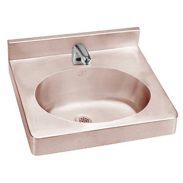 Bathroom Sink, With Faucet, Body Material Antimicrobial Copper-Nickel Alloy, Mounting Type Wall, Color Copper, Overall Length 25 5/8 in, Overall Width 8 7/8 in, Overall Height 25 1/4 in, Bowl Size 11 3/8 in x 15 1/2 in, Bowl Depth 6 in, ADA Compliant Yes, Back Splash Yes, Bowl Shape Oval, Back Splash Height 4 in, Side Splash No, Faucet Operation Sensor, Number of Stations 1, Drain Opening 2 in, Gauge 18, Faucet Mounting Centers 1 in, Faucet Hole Dia. 1 1/2 in, Number of Holes 1