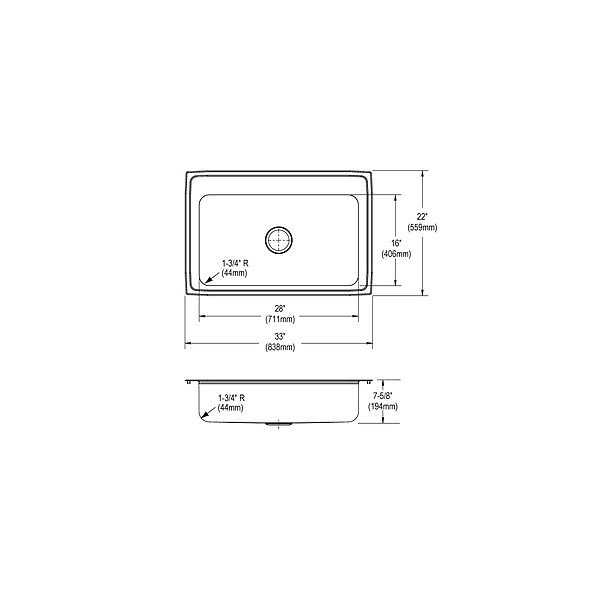 Bowl Drop-In Sink, 33"x21.25"x6.5", Gray