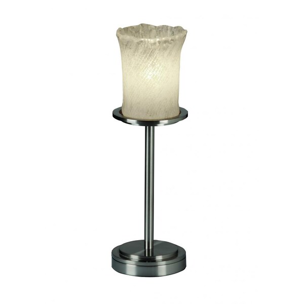 This One Light Table Lamp has a Nickel Finish and is part of the Dakota Collection.
