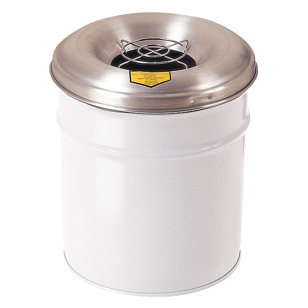 Cigarette Receptacle Drum, Free-Standing, White, 6 gal, Height 17 3/4 in, Width 12 1/4 in, Base Dia. 12 1/4 in, Container Depth 17 3/4 in, Metal, Aluminum, Steel, Powder-Coated, Round, Number of Openings 1