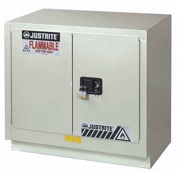 Flammable Cabinet, Safety Cabinet Type Under Counter, Capacity 23 gal, Height 35-3/4 In., Width 36 In., Depth 21-5/8 In., Safety Cabinet Door Type Manual, Number of Cabinet Shelves 1, Color Light Neutral, Number of Doors 2