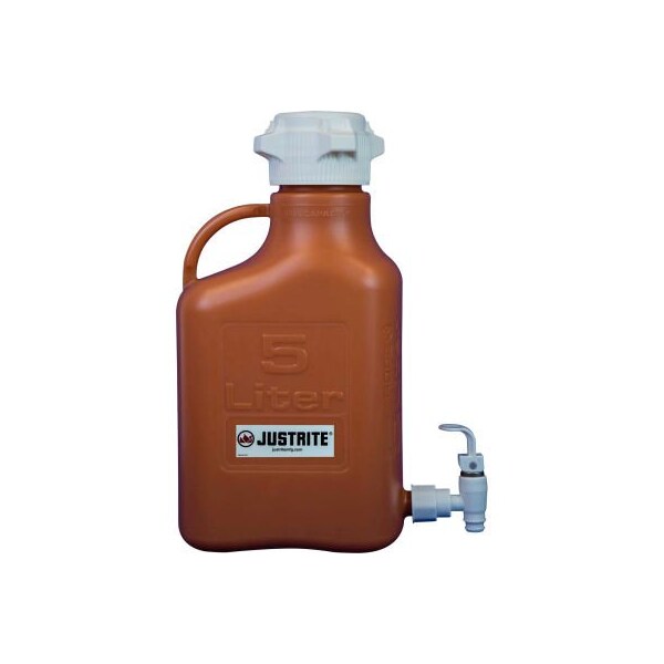 Justrite 12924 carboy with spigot, hdpe, 5-liter excellent chemical compatibility for storing and dispensing solvents, buffers, reagents, and powders.