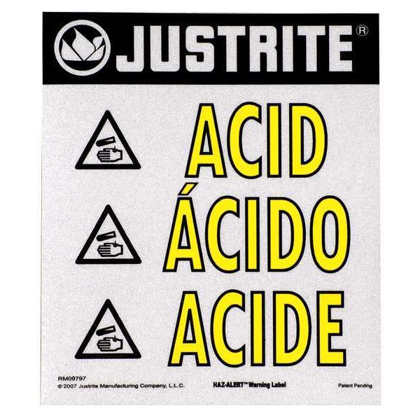 Safety Cabinet Label, Horizontal Rectangle, Number of Printed Sides 1, English, Sign Legend Acid, Sign Legend Style Symbol and Text