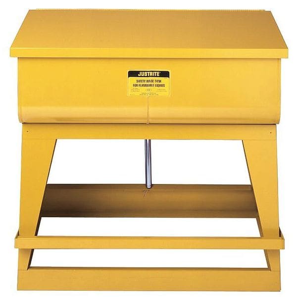 Rinse Tank, Capacity 22 gal, Safety Can Mounting Style Floor, Can Material Steel, Material Finish Powder Coated, Color Yellow, Overall Height 12 in, Number Of Chambers 1, Cleaning Tank Type Rinse Tank, Length 35 1/4 in, Lid Features Self-Closing, Product Type Parts Rinse Tank, Standards ADA, FM, Width 16 in