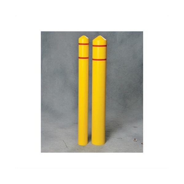 Round Smooth Bumper Post Sleeve with Two 3/4 in Reflective Red Stripes, for Post Size 4 in, Yellow