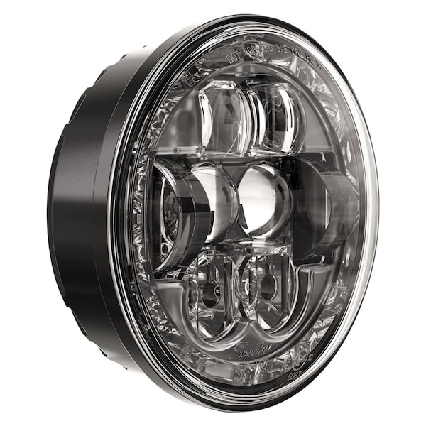 LED Bulb; High and Low Beam; White Bulb; Clear Polycarbonate Lens; Black Aluminum Housing; DOT/ ECE Approval; Single; 5-3/4 Inch Round; With Turn Signal/ Front Position and Daytime Running Lights