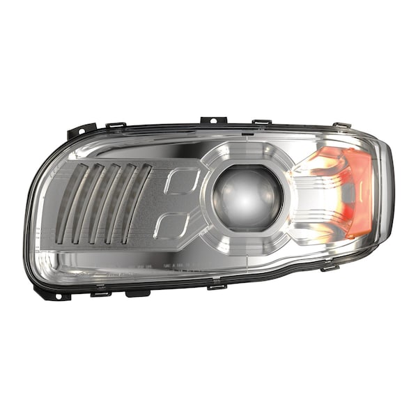 LED Bulb; High And Low Beam With Built-In Daytime Running Light/ Turn Signal Light; White/ Amber Bulbs; 2.1 Amp Draw At 12 Volt DC Low Beam/ 4.2 Amp Draw At 12 Volt DC High Beam; Clear Polycarbonate Non-Heated Lens; Black Housing With Chrome Inner Bezel; DOT/ SAE Approved; IP67 Rated; 17.44 x 8.23 Inch Rectangular; Left Hand; Single