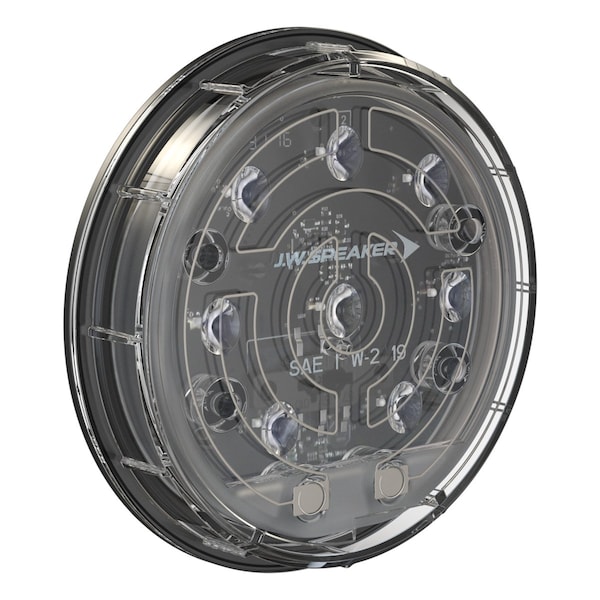 4 Inch Diameter x 0.8 Inch Height; Round; Grommet/Flange Bracket Mount; LED; Heated; Clear Lens With Blue Bezel; 12 Volt To 24 Volt; IP69K Rated/ DOT And SAE Approved