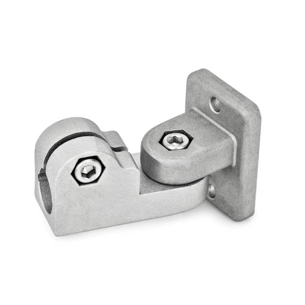 GN 281 swivel clamp connector joints are an assembly of two swivel clamp connectors. The clamping bore is machined and designed for construction tubings. The clamping force of the clamp onto the tube is achieved via the socket cap screws and hex nuts with nylon insert.