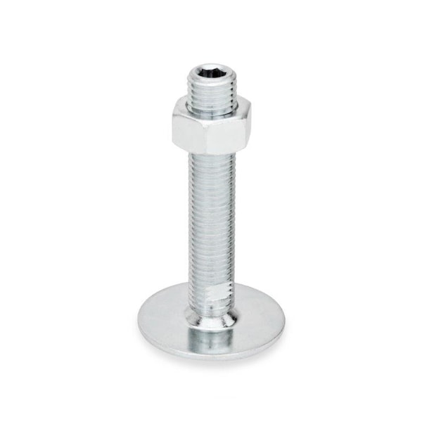 GN 40 leveling feet are simple, economically priced components. The static load rating of these feet is limited due to the acceptable load rating of the stud. The values given in the table assume a straight compressive load, perpendicular to the foot. The bending and buckling stress factors often found in the actual application reduce the load rating of the stud, and must be compensated for accordingly.