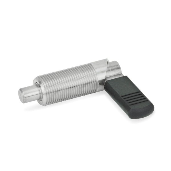 GN 612 cam action indexing plungers are best utilized in applications where the pin may need to be retracted periodically. By rotating the lever arm 180° the plunger pin is withdrawn. The notch allows for safe positioning while the plunger pin is held in the retracted position. The grooved lever arm provides the user with a better grip when operating the mechanism.