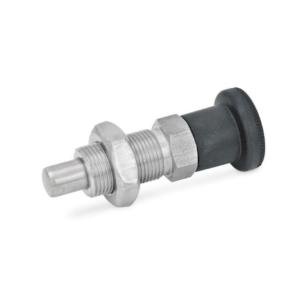 GN 817 indexing plungers with lock-out (Type C / CK) are used for applications where the plunger pin needs to stay in its retracted position. To achieve this, the knob is rotated by 90 degrees after being retracted. A notch keeps the plunger in the retracted position. This indexing plunger has the unique feature of the pull knob partially enclosing the top of the plunger body, allowing less debris to enter into the mechanism. Type G and GK with threaded stem are for applications where a special knob or attachment is required, or for such cases where the spindle is linked directly to an operating mechanism.