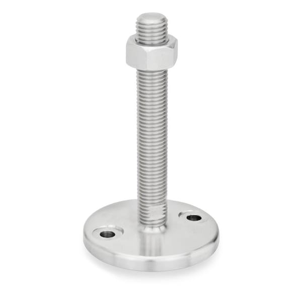 GN 23 leveling feet have a machined base and higher load ratings. The unique design of the base with the convex mounting area for the concave ended stud provides not only the ability for the stud to swivel, but also does not allow liquids to build up as it will with other ball socket leveling feet.