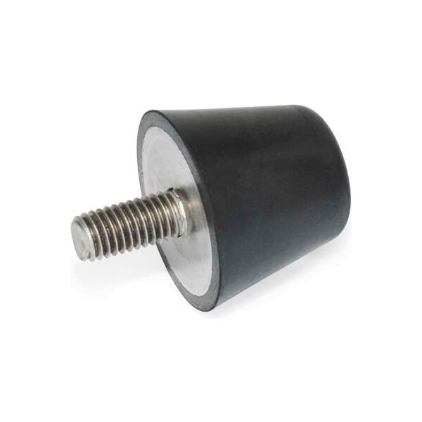 J.w. Winco vibration/shock absorption mount, conical, 20.5mm height, 97 max load, 254-25-m6-25-55 vibration / shock absorption mounts, also known as shock absorbing mounts, vibration mounts, anti-vibration mounts, vibration bobbins or rubber bumpers, are frequently used as end-stop bumpers, e.g., for conveyor trolleys. They absorb most of the accumulated kinetic energy on impact. They act as dampers and prevent damaging shock and rebound. They also act as sound dampers. These isolation mounts are also used as leveling feet.
