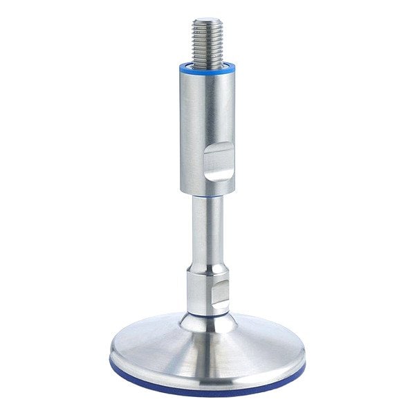 Male-End Leveling Mount, Leveling Mount Type Swiveling Stud, Base Dia. 60 mm, Height 175 mm, Load Capacity 30 kN, Thread Size M16, Construction Stainless Steel, Includes Adjustable Sleeve with FDA-Compliant Wiper and Sealing Ring, Connection Type Threaded Stud, Bolt Length 54 mm, Base Material 304 Stainless Steel, Swivel Angle 8 Degrees , Base Shape Round, Mounting Holes Included No, FDA 3-A Standard Compliance FDA 3-A Standard Compliant, Series GN 20, Base Stainless Steel